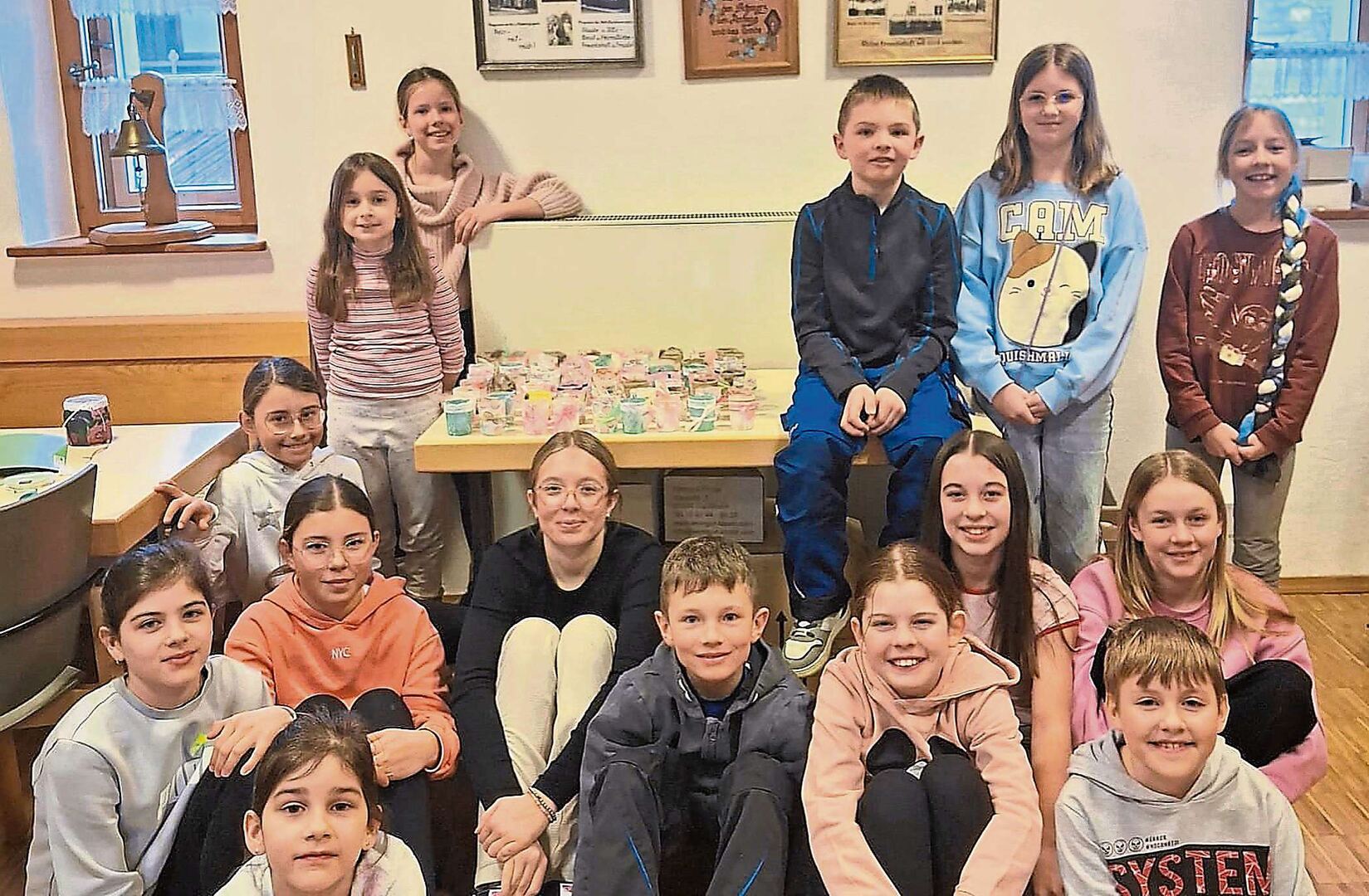 Am Samstag entfalteten die Ministranten ihre kreativen Fähigkeiten. Die Ministranten fertigten österliche Aufmerksamkeiten für die älteren Mitglieder der Pfarrgemeinde an. Es wurden Gläser mit Servietten, die reich an Oster- und Frühlingsmotiven waren, beklebt. Der Nachmittag förderte nicht nur handwerkliche Fertigkeiten, sondern trug auch zur Stärkung des Zusammenhalts bei.– Bild: Die Minis gönnten sich eine Verschnaufpause beim Bastelnachmittag.  Foto: Hermann Schropp
