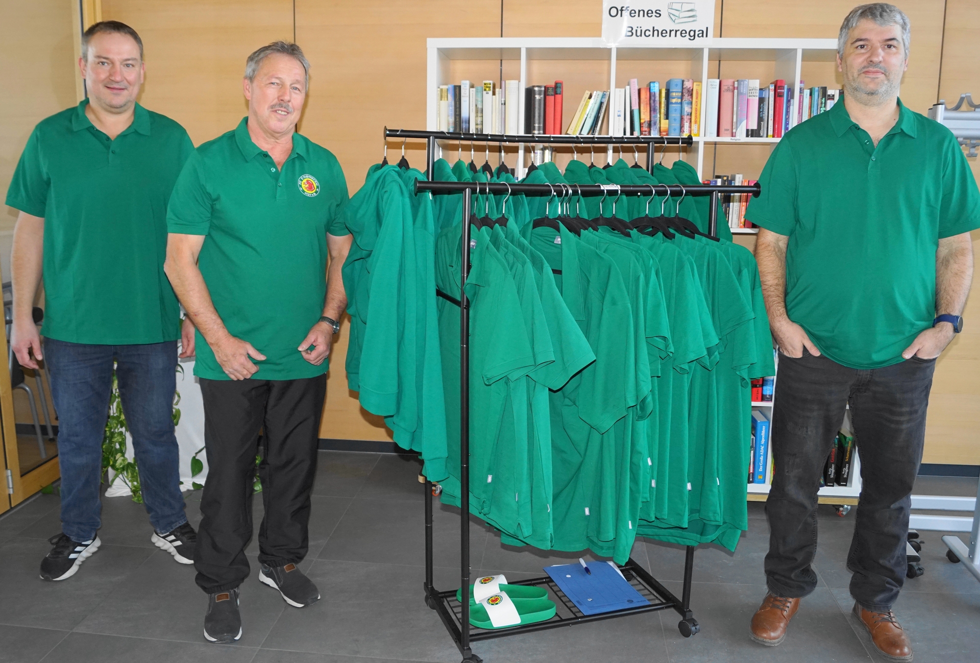 Am Freitag letzter Woche konnten Schatzmeister Michael Wutz, 1. FC-Vorsitzender Lothar Greisinger und Festausschussmitglied Michael Janker (v.l.) im Bürgerhaus die neue Vereinskleidung vorstellen.