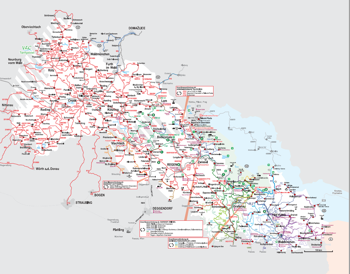 Das Tarifgebiet erstreckt sich über die Landkreise Cham, Freyung-Grafenau und Regen, bis nach St. Englmar im Landkreis Straubing-Bogen. Das GUTi gilt sogar über Landesgrenzen hinaus in den westlichen Bezirk Pilsen. Kostenfreie Fahrten sind somit auf rund 200 Bus- und Bahnlinien und auf einem Streckennetz von 3.200 km möglich.